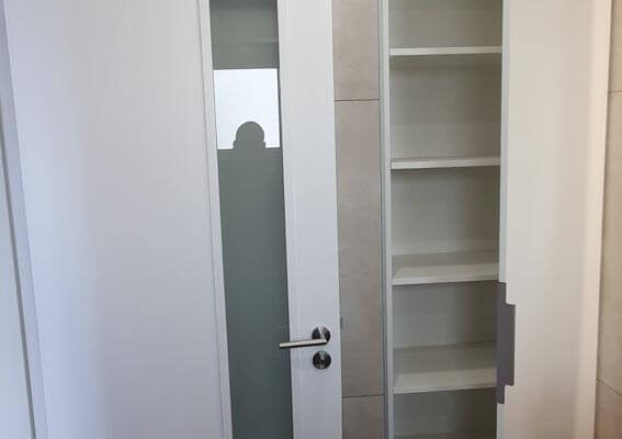 Fabrication et pose d’une porte et d’un placard de salle de bain
